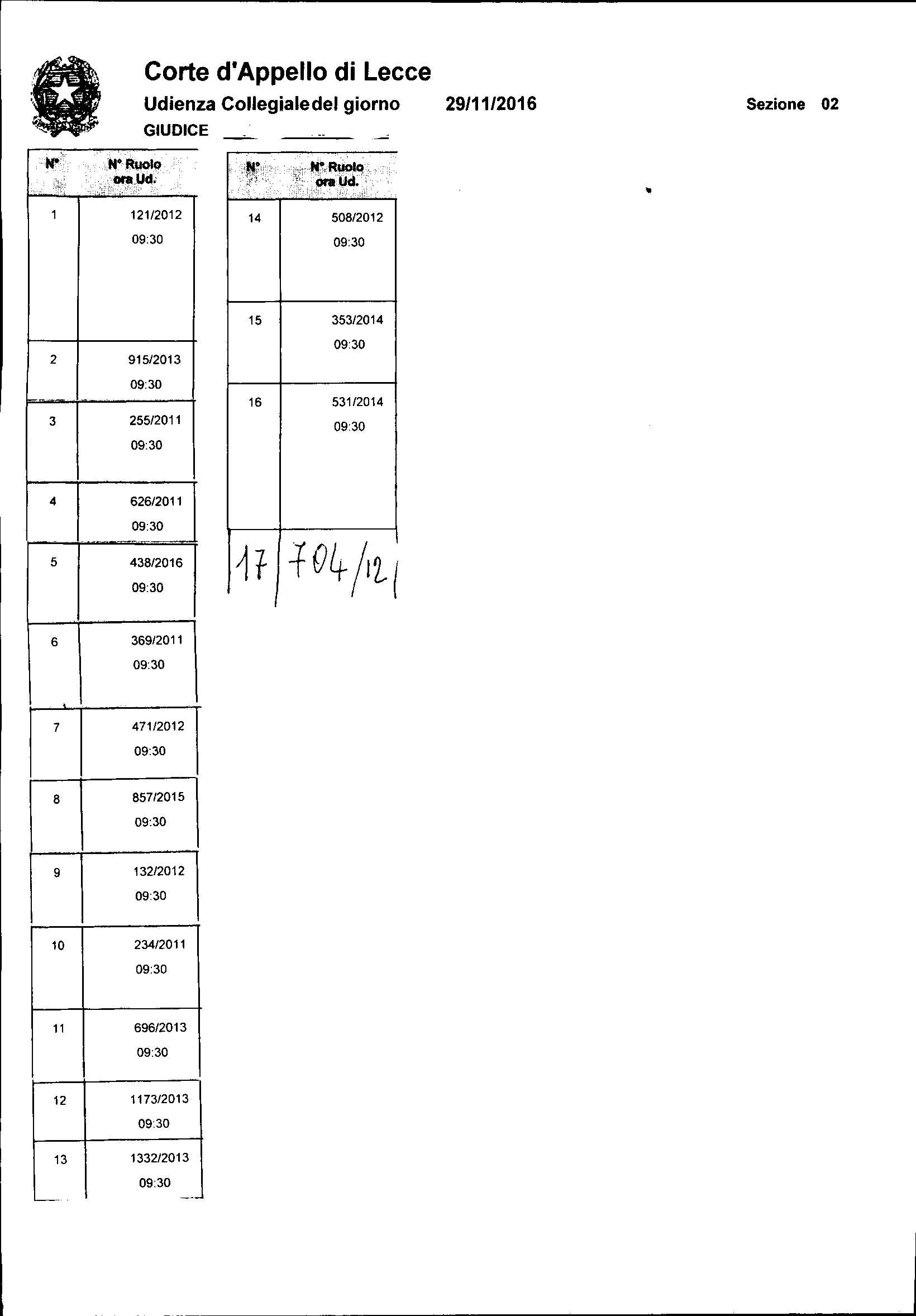 Corte di Appello di Lecce 2a Sezione - Udienza del 29 novembre 2016