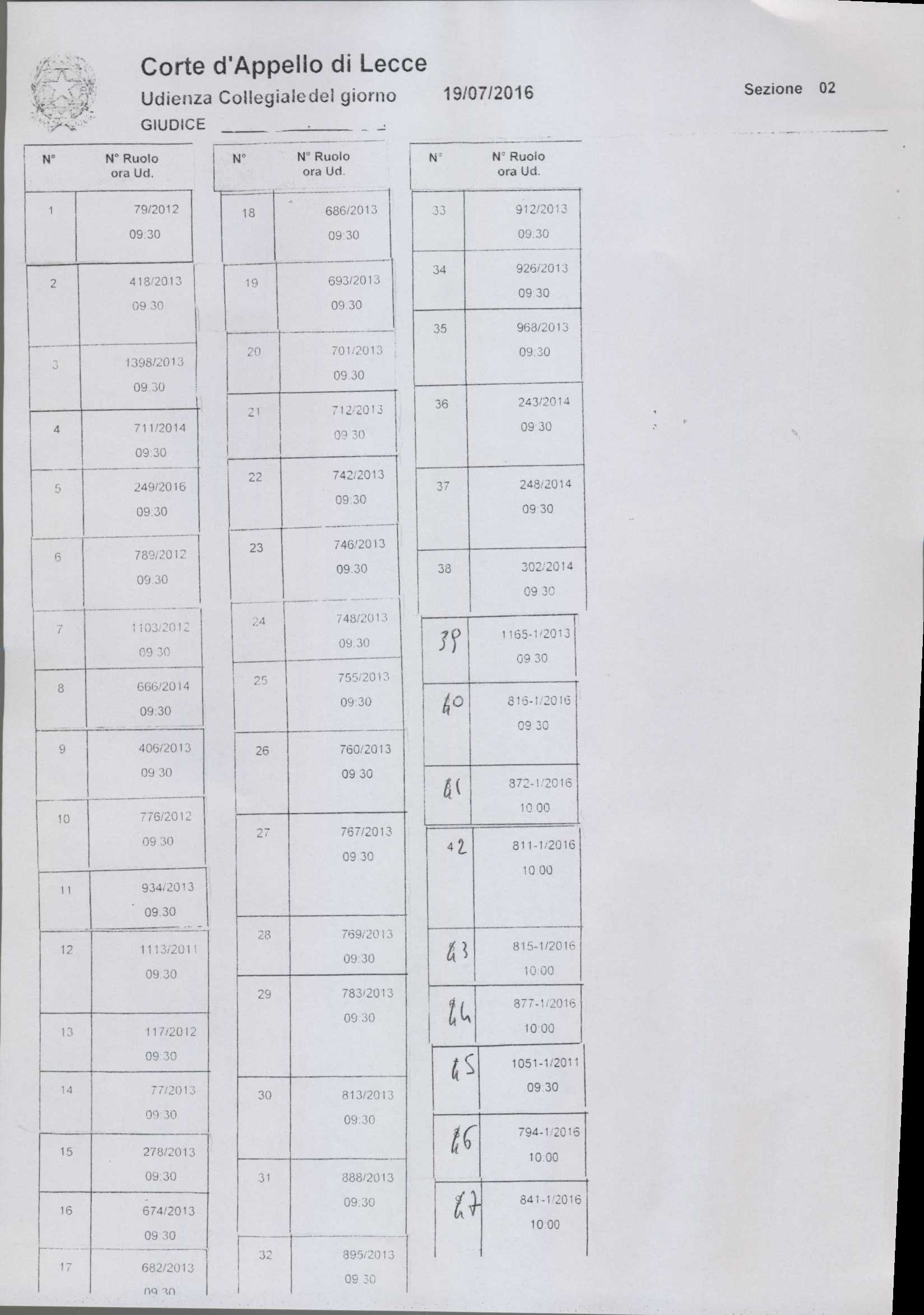CORTE DI APPELLO 2a SEZ. - Udienza 19 luglio 2016