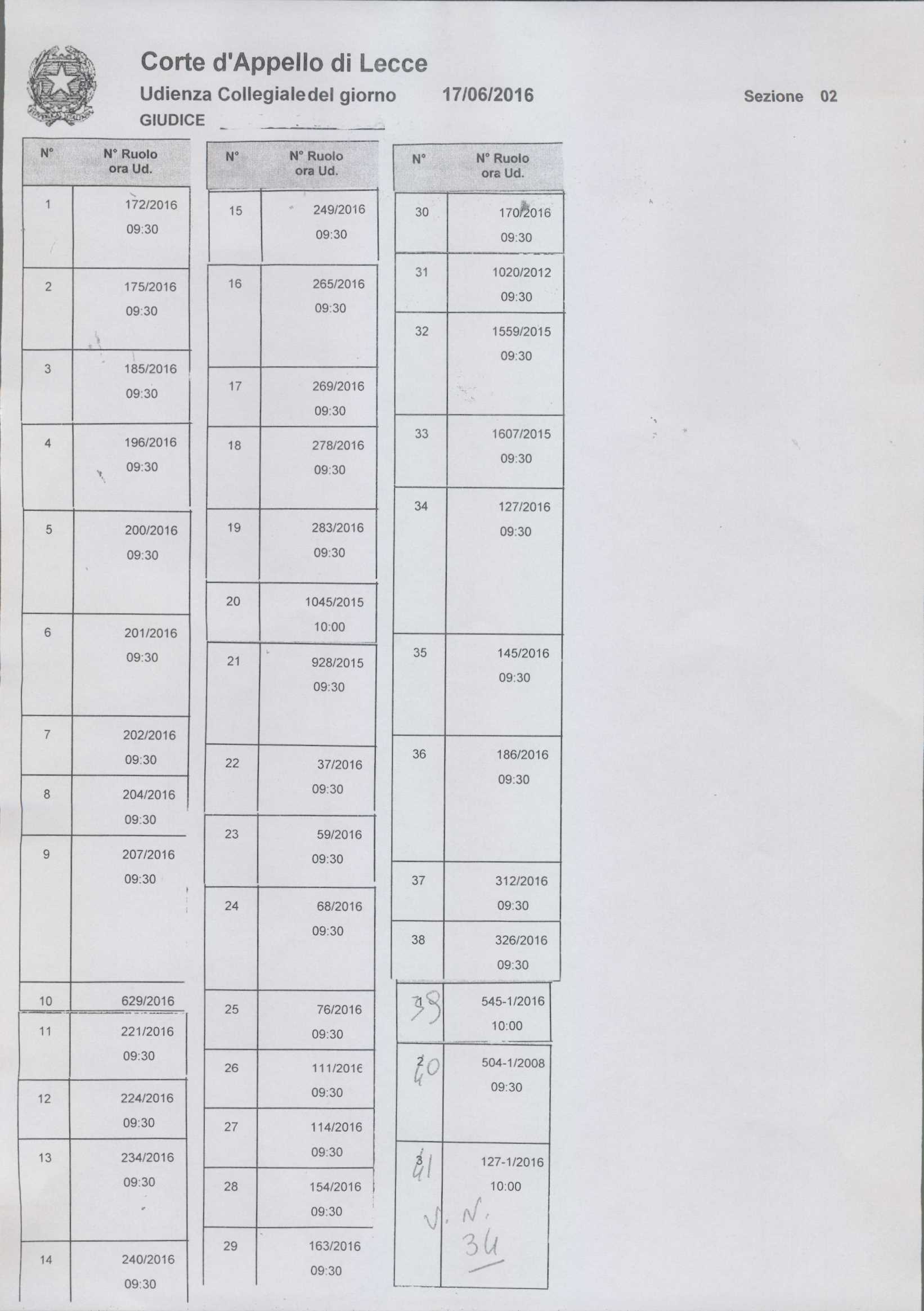 Corte di Appello seconda sezione civile - Udienza del 17 giugno 2016