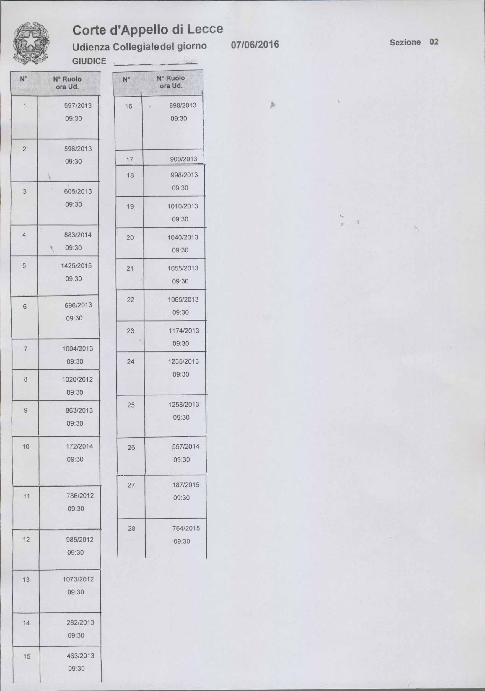 Corte di Appello seconda sezione civile - Udienza del 7 giugno 2016