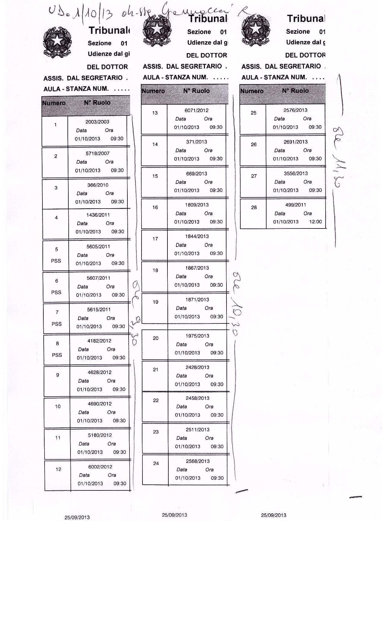 Ruolo udienza del 01 ottobre 2013 della dr.ssa Giannaccari
