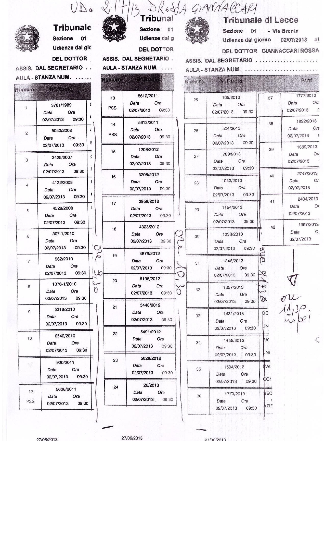 Ruolo udienza del 02/07/2013 dr.ssa Giannaccari