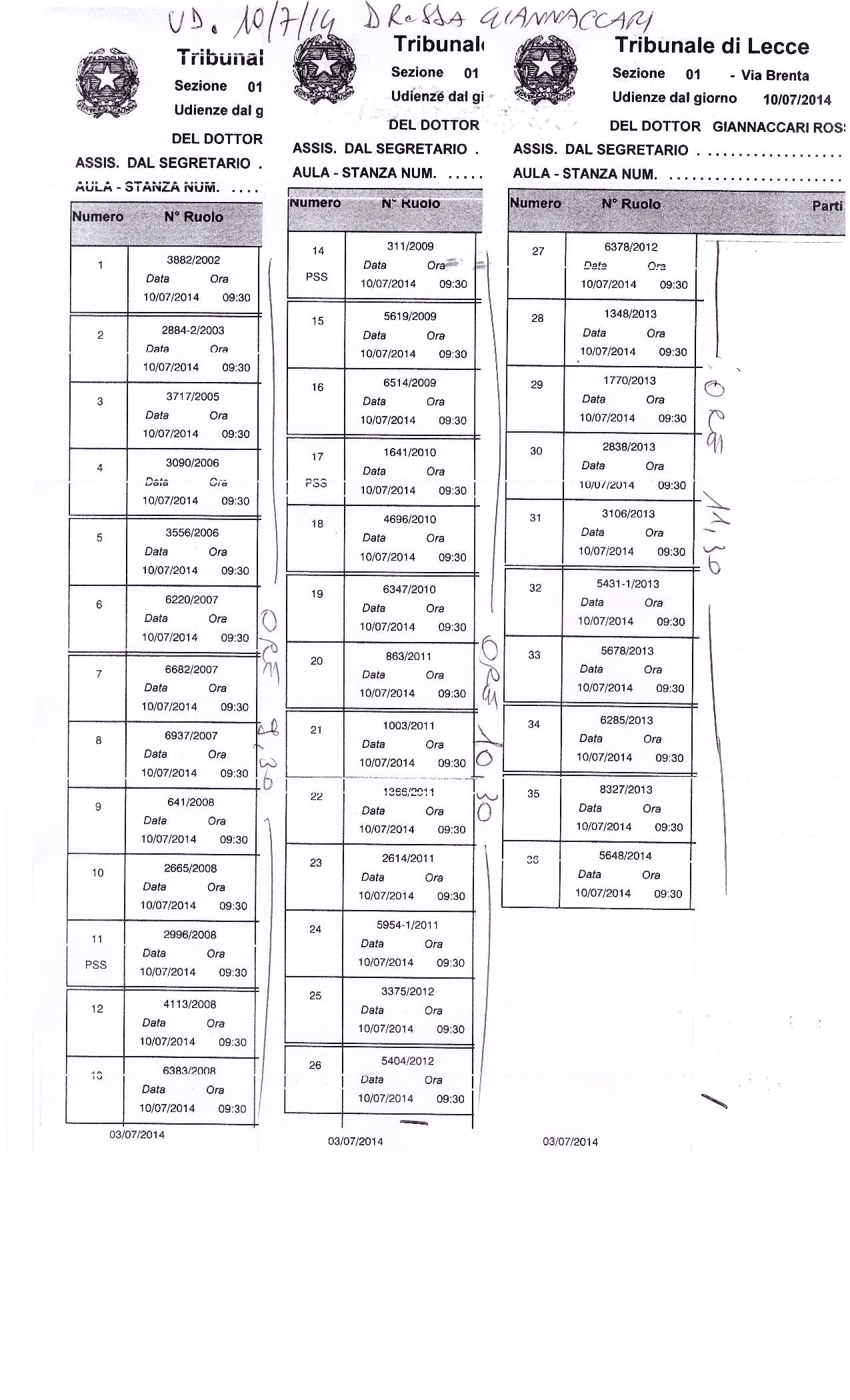 TRIBUNALE CIVILE DI LECCE Ia SEZ. - Udienza del 10 luglio 2014 Dott.ssa Giannaccari