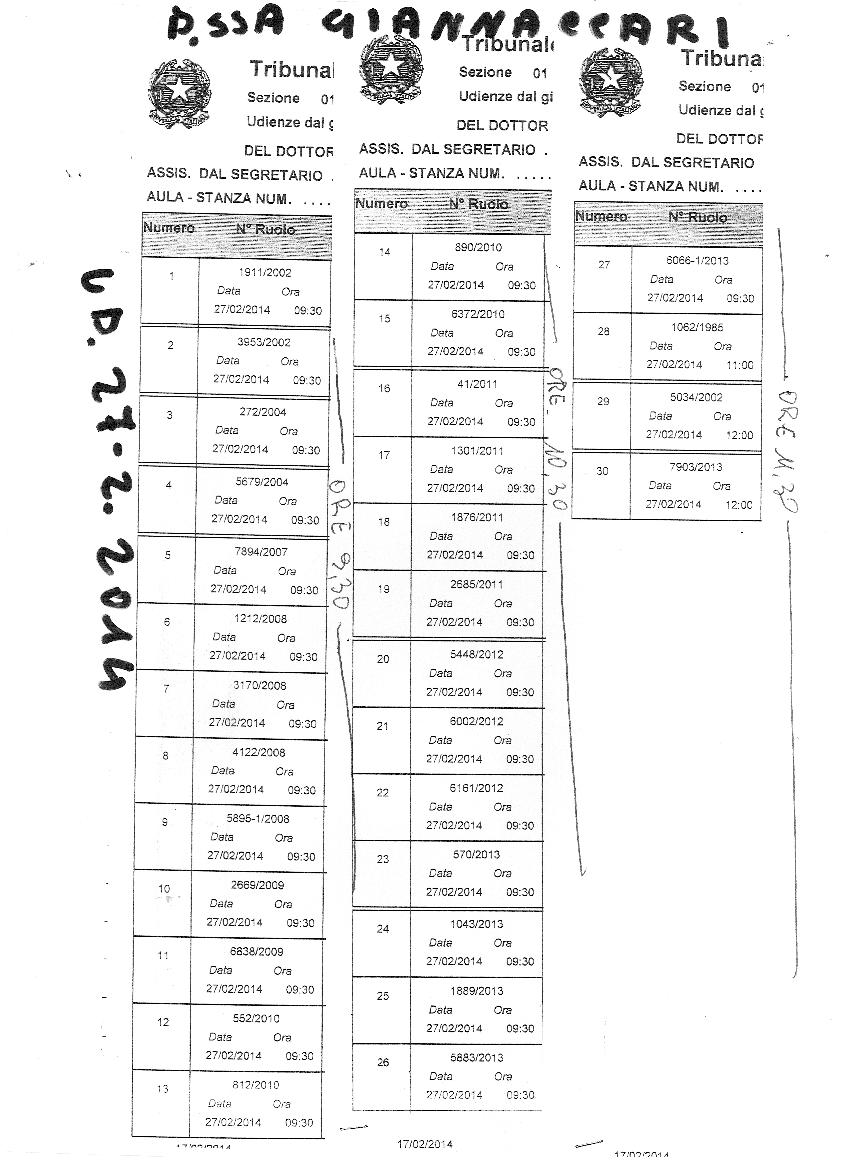 TRIBUNALE CIVILE DI LECCE PRIMA SEZIONE - udienza del 27 febbraio 2014 Dott.ssa GIANNACCARI