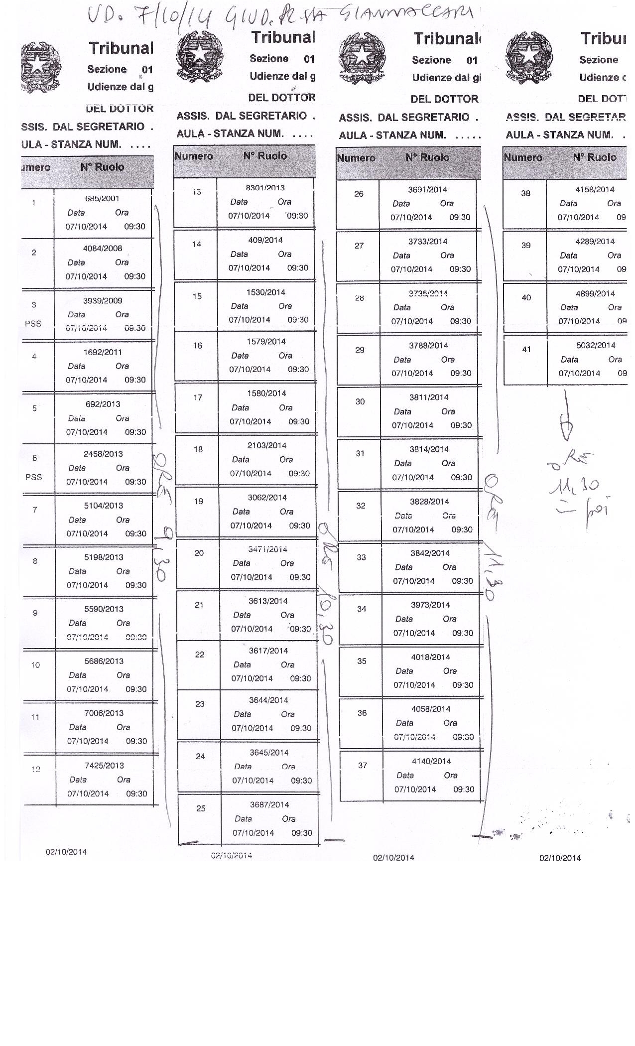 TRIBUNALE DI LECCE - 1a SEZ. CIVILE - UDIENZE DEL 7 E 9 OTTOBRE DOTT.SSA GIANNACCARI