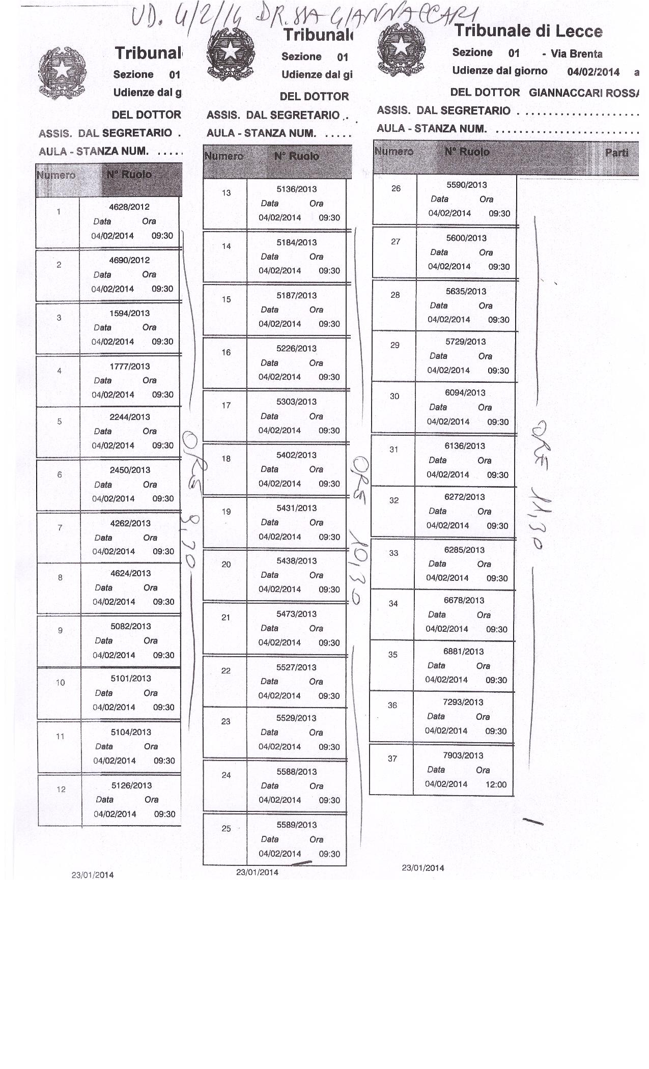TRIBUNALE DI LECCE Ia SEZ. CIVILE - Udienza del 4 febbraio 2014, ruolo della dr.ssa Giannaccari