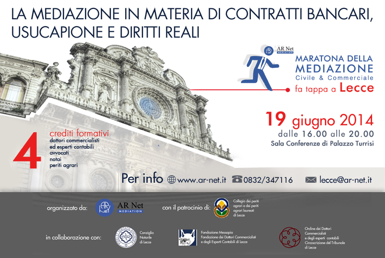 Convegno sulla "Mediazione in materia bancaria, usucapione e diritti reali" - 19 giugno 2014 ore 16 Sala Conferenze c/o Palazzo Turrisi, via M. Basseo 1 LECCE