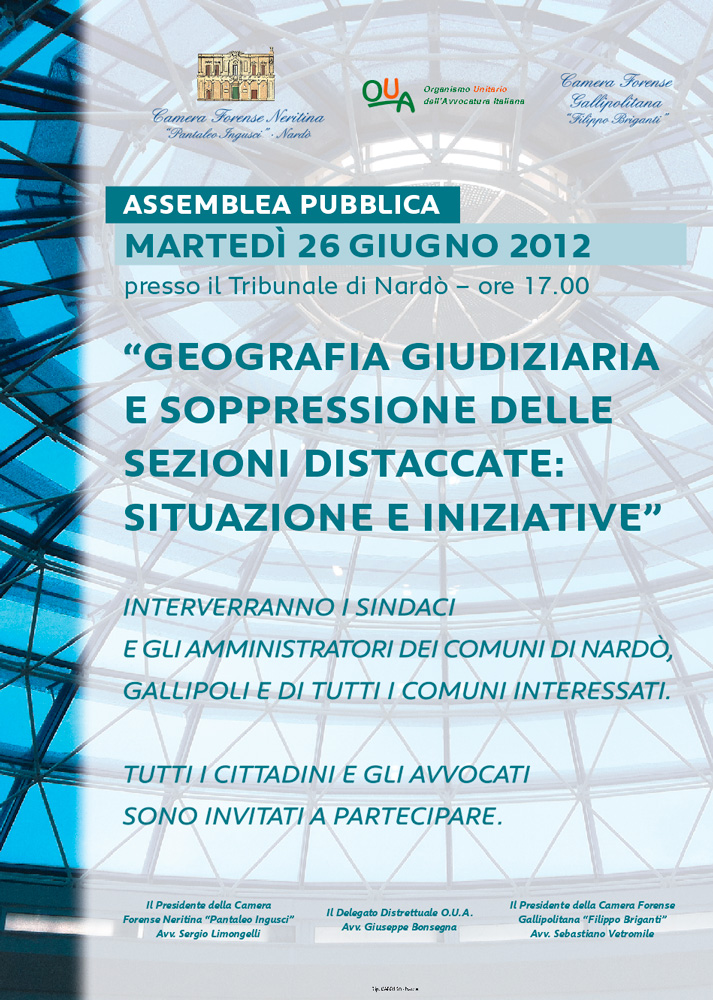 ASSEMBLEA PUBBLICA PRESSO IL TRIBUNALE DI NARDO' 26 GIUGNO 2012 ORE 17,00