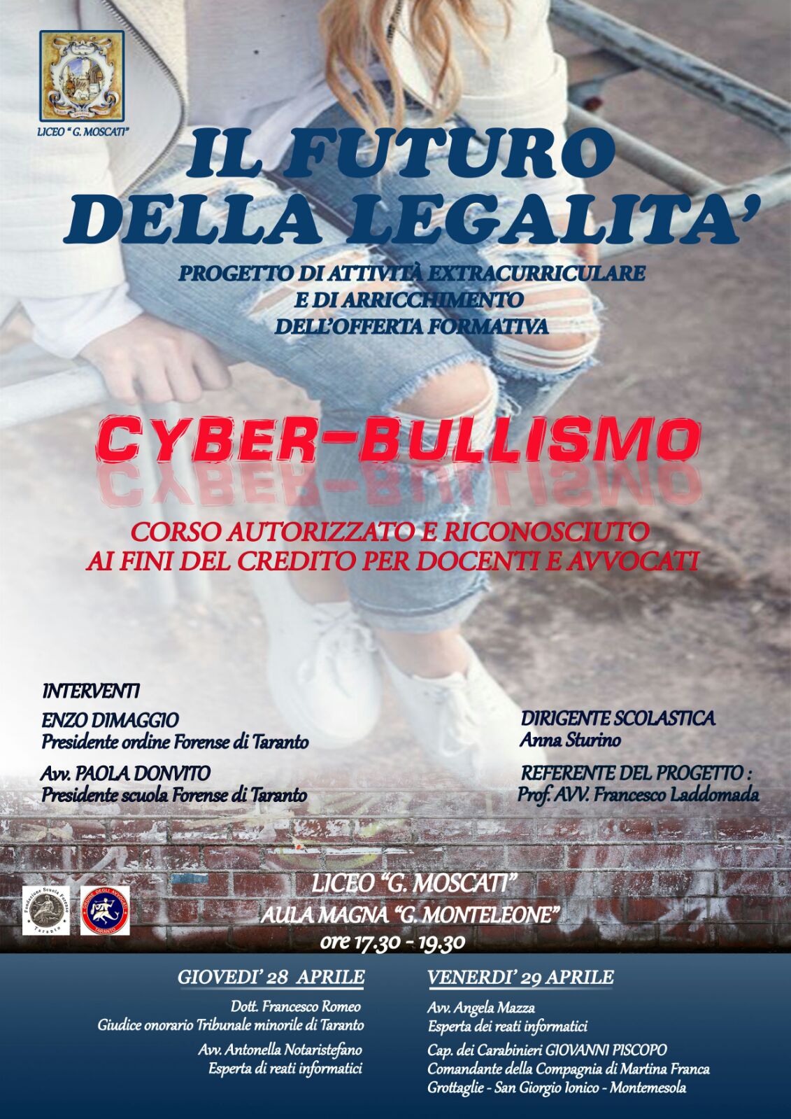 Il liceo "Moscati" di Grottaglie, in collaborazione con la FondazioneScuola Forense e l'Ordine degli Avvocati di Taranto, organizza l'eventoformativo: "Cyberbullismo"